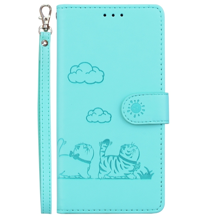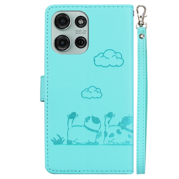 Funda de Cuero Rfid para Motorola Moto G75 5G con Diseño de Gatos (Verde)