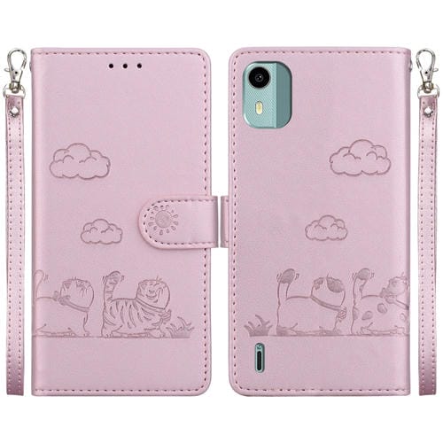 Funda de Cuero Rfid para Nokia C12 con Diseño de Gatos (Oro Rosa)