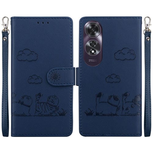 Funda de Cuero Rfid con Diseño de Gatos para Oppo A60 4G (Azul)