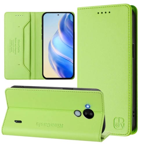 Funda de Cuero Rfid para Nokia C30 Rc01 con Doble Pliegue y Succión Magnética (Verde Hierba)