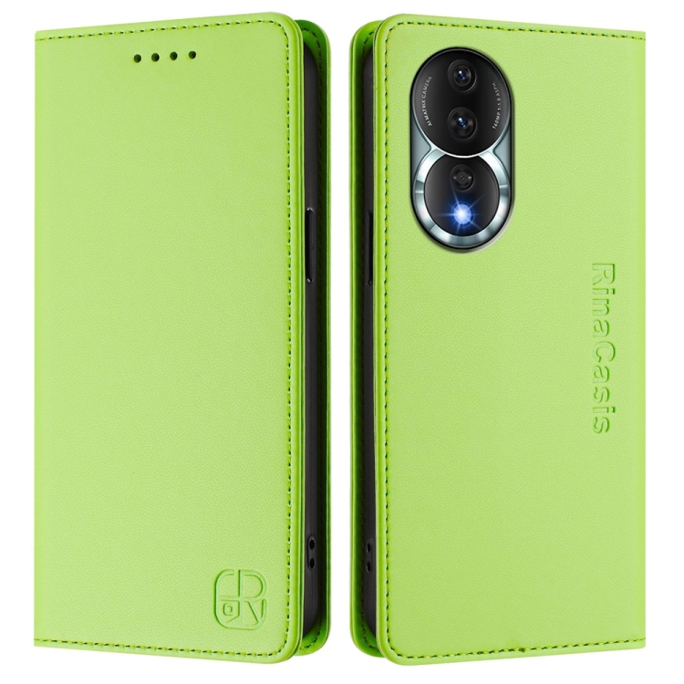 Funda de Cuero Rfid para Honor 80 Rc01 con Doble Pliegue y Succión Magnética (Verde Hierba)