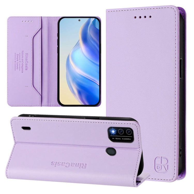 Funda de Cuero RFID para Teléfono Itel A48 Rc01 con Doble Pliegue y Succión Magnética (Morado Claro)