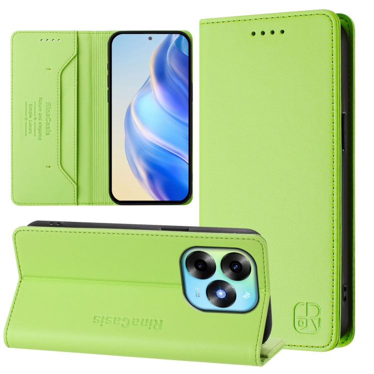 Funda de Cuero Rfid para Teléfono Itel S23+ Rc01 con Doble Pliegue y Succión Magnética (Verde Hierba)
