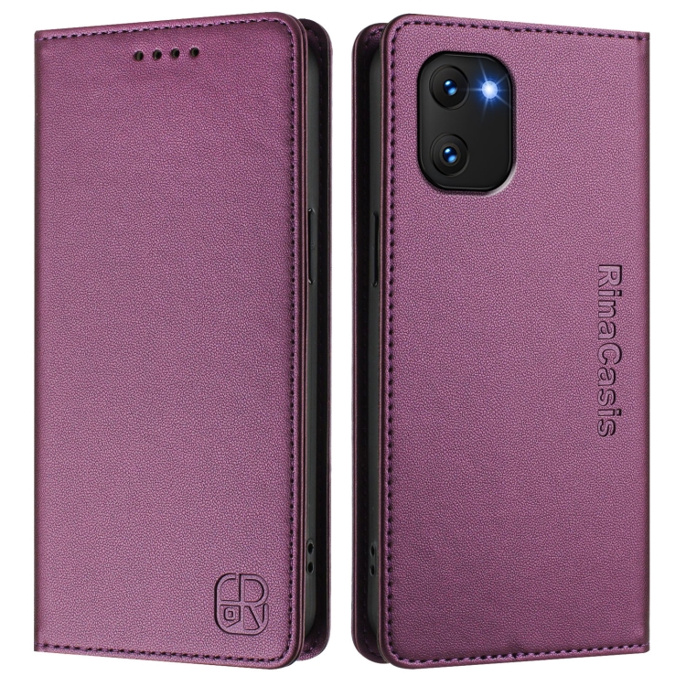 Funda de Cuero Rfid para Umidigi Power 7/7S Rc01 con Doble Pliegue y Succión Magnética (Violeta)
