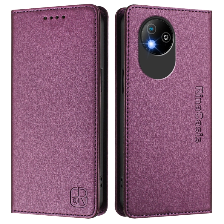 Funda de Cuero Rfid para ZTE Blade A35 Lite A35 Core Rc01 con Doble Pliegue y Succión Magnética (Violeta)