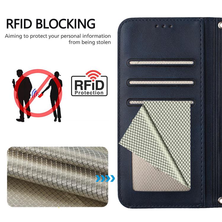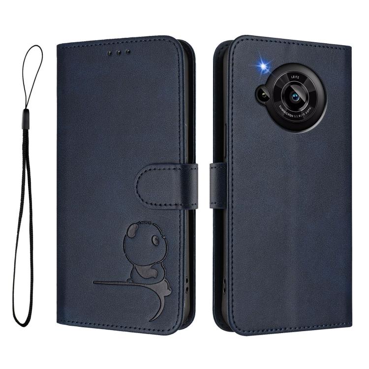Funda de cuero RFID con estampado de panda y cordón para Sharp Aquos R7 SH-52C (azul)