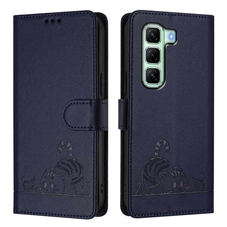 Funda de Cuero RFID con Estampado de Rata y Gato para Infinix Hot 50 5G con Cordón (Azul)