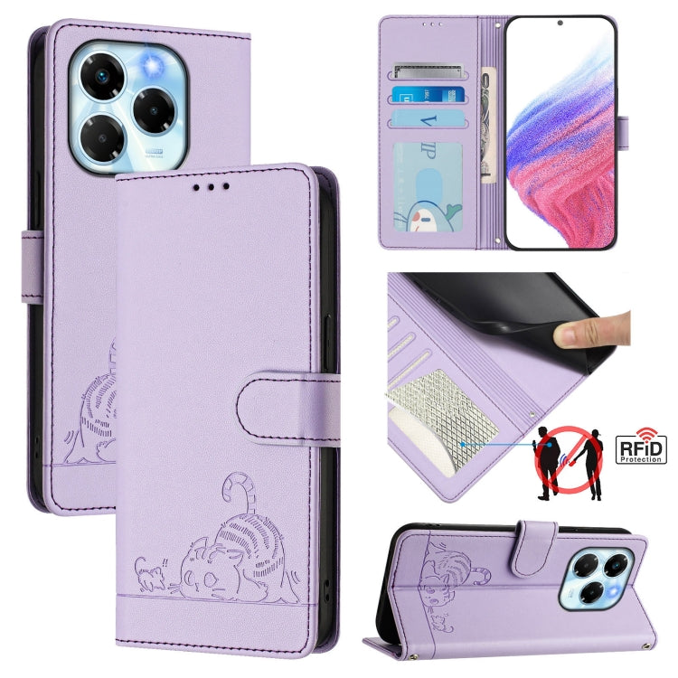 Funda de Cuero Rfid para Infinix Note 40X 5G con Estampado de Rata y Gato y Cordón (Morado)