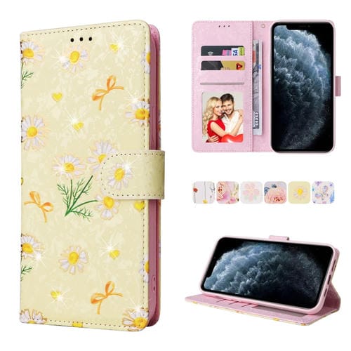 Funda de Cuero Rfid para iPhone 11 Pro Max con Pintura Bronceadora (Margarita Amarilla)