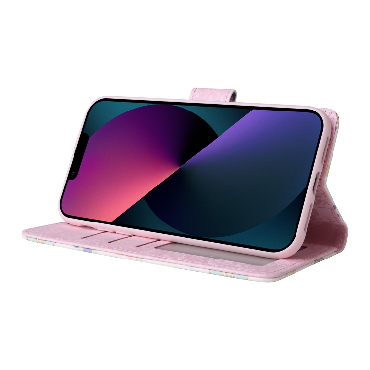 Funda de Cuero RFID para iPhone 13 Mini con Pintura Bronceadora (Flor Floreciente)