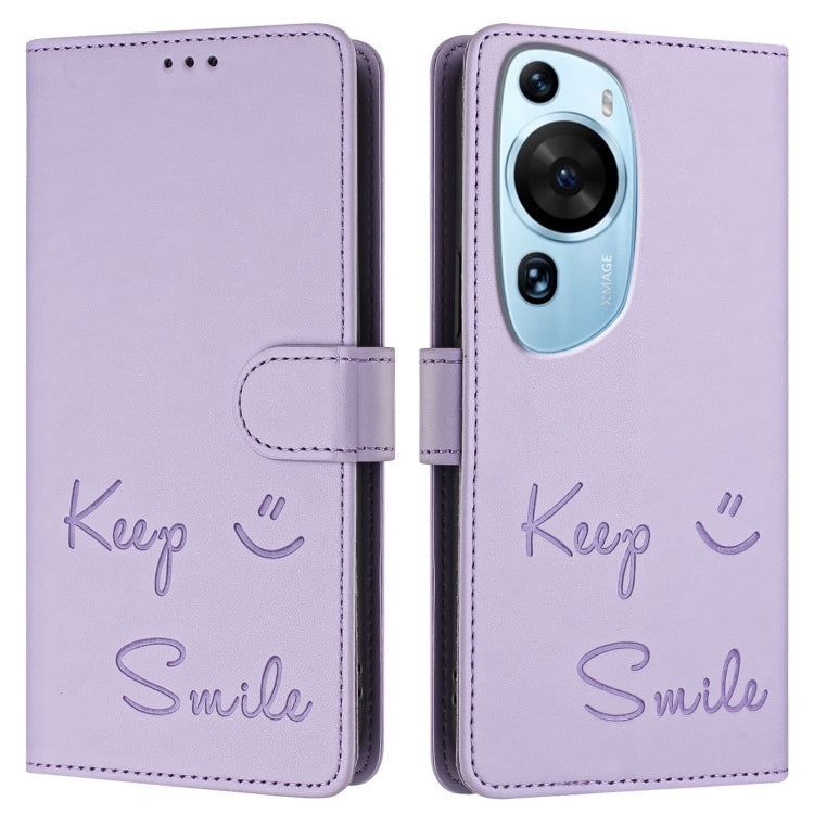 Funda de Cuero Rfid con Relieve Art Smile para Huawei P60 (Morado Claro)