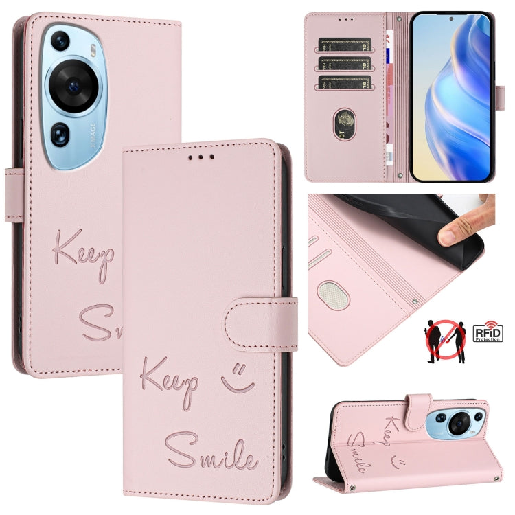Funda de Cuero Rfid con Relieve Art Smile para Huawei P60 (Rosa)