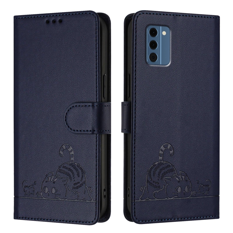 Funda de Cuero Rfid con Relieve de Gato y Rata para Nokia C300 con Cordón (Azul)