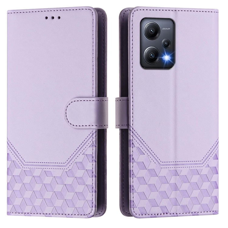 Funda de Cuero Rfid con Relieve de Panal Global para Redmi Note 12 5G (Morado Claro)