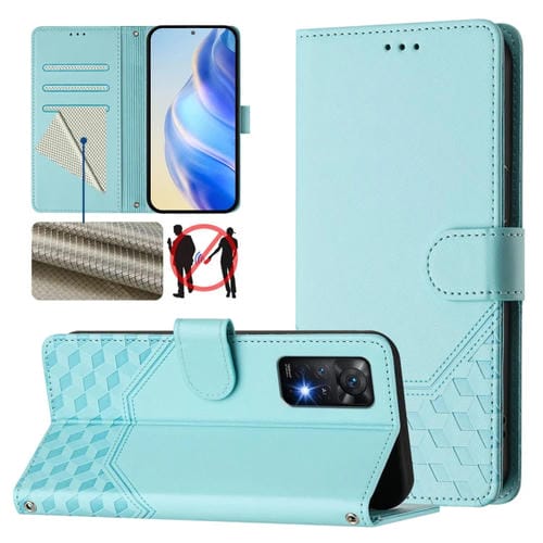 Funda de Cuero Rfid con Relieve de Panal Global para Redmi Note 12 Pro 4G (Verde Menta)