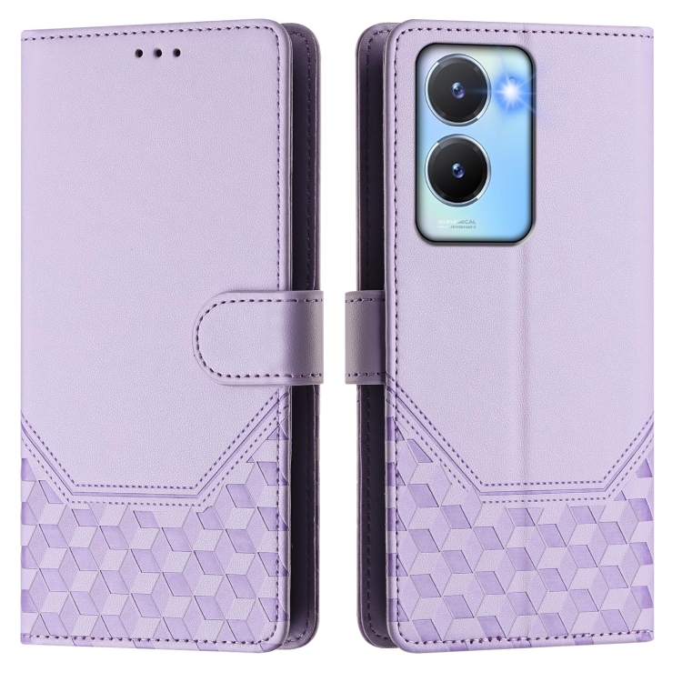 Funda de Cuero Rfid con Relieve de Panal Global para Vivo Y56 5G / Y16 4G / Y02S 4G (Morado Claro)