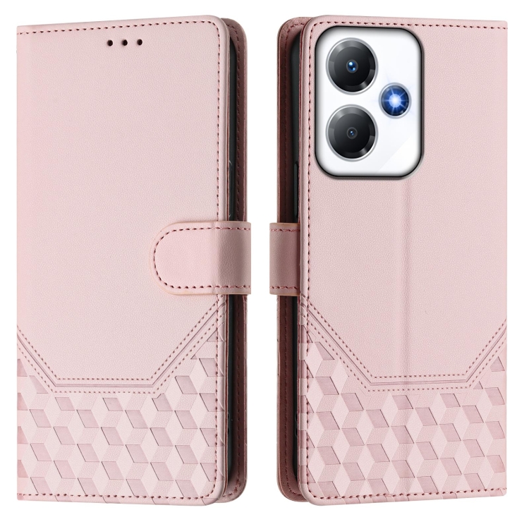 Funda de Cuero Rfid con Relieve de Panal para Infinix Hot 30 Play 4G/Nfc (Rosa)