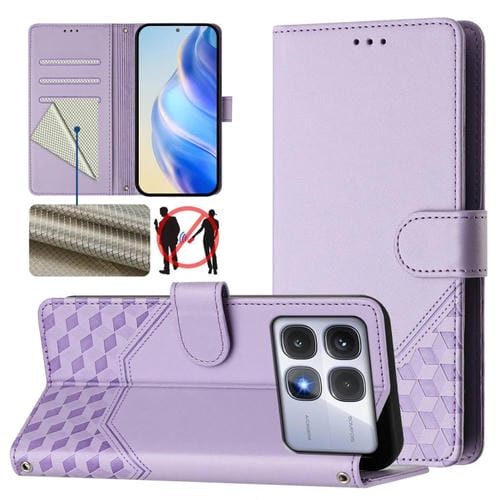 Funda de Cuero Rfid con Relieve de Panal para Redmi K70 Ultra 5G (Morado Claro)