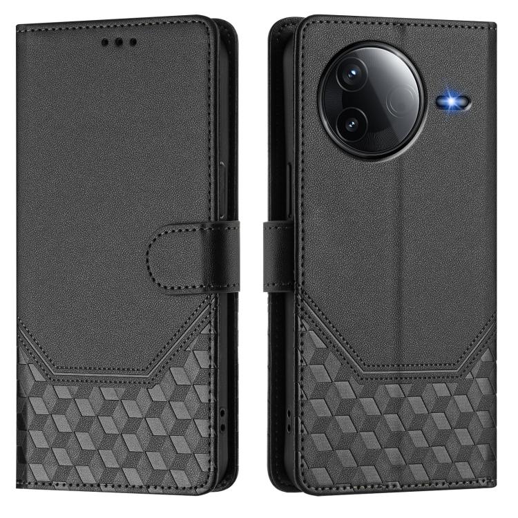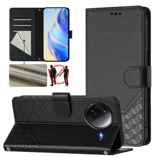 Funda de Cuero Rfid con Relieve de Panal para Redmi K80 5G/K80 Pro 5G (Negra)
