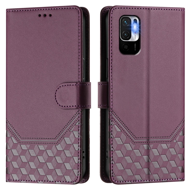 Funda de Cuero Rfid con Relieve de Panal para Redmi Note 10 5G/Note 10T 5G (Violeta)