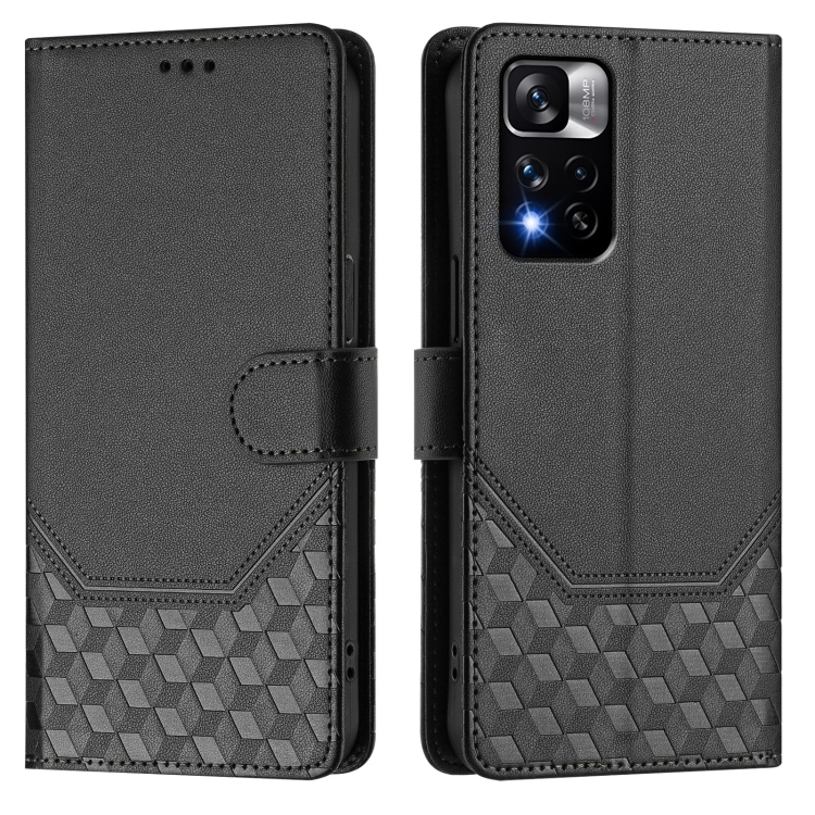 Funda de Cuero Rfid con Relieve de Panal para Redmi Note 11 Pro+ 5G Europa (Negro)