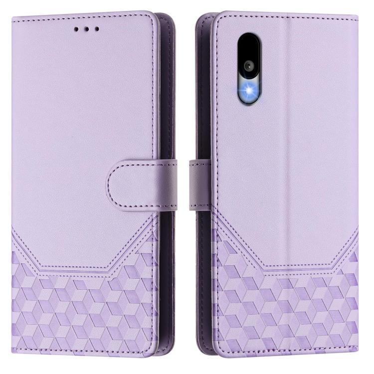 Funda de Cuero Rfid con Relieve de Panal para Sharp Basio Active3 (Morado Claro)