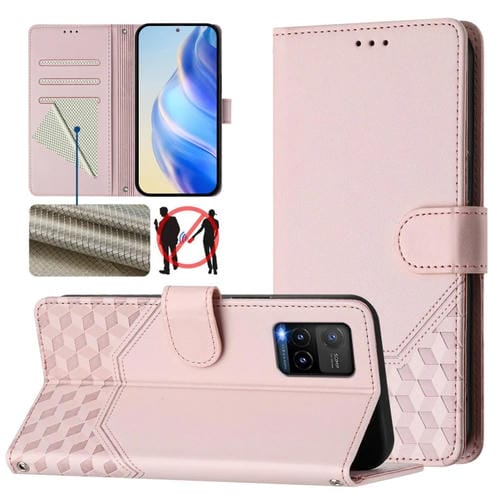 Funda de Cuero Rfid con Relieve de Panal para Vivo Y33S 4G / Y21 2021 / Y21S / Y21T (Rosa)