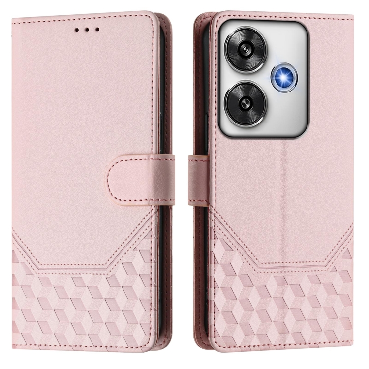 Funda de Cuero Rfid con Relieve de Panal para Xiaomi Poco F6 5G (Rosa)
