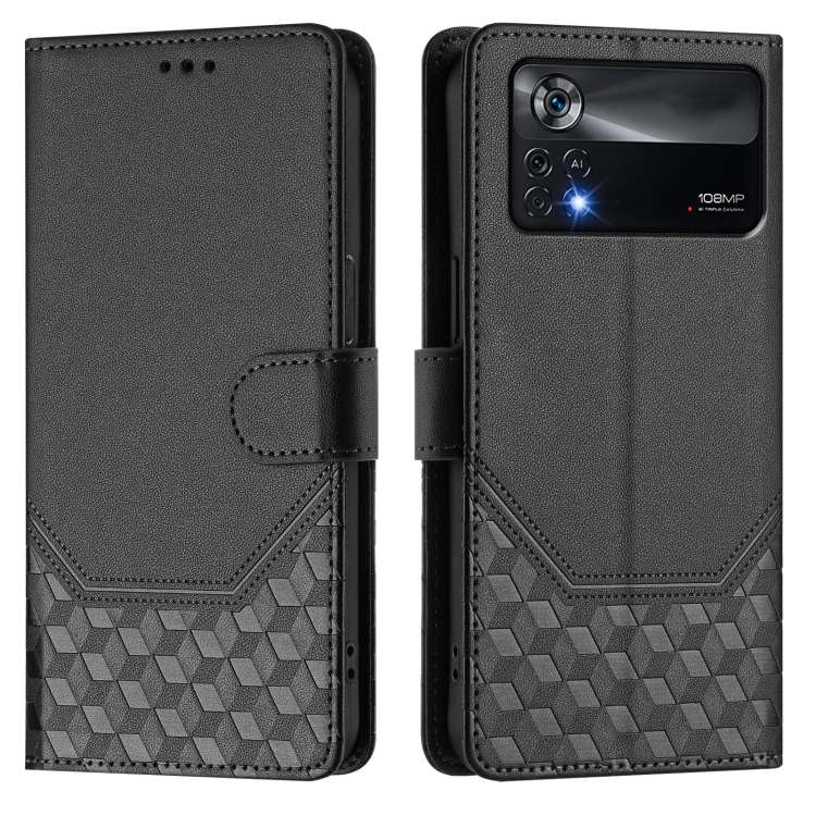Funda de Cuero Rfid con Relieve de Panal para Xiaomi Poco X4 Pro 5G (Negra)