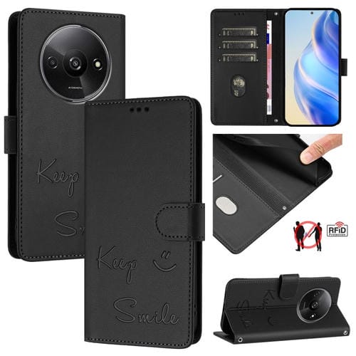 Funda de Cuero Rfid con Relieve de Sonrisa Global para Redmi A3 4G (Negra)