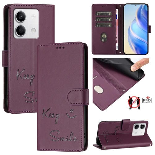 Funda de Cuero Rfid con Relieve de Sonrisa Global para Redmi Note 13 5G (Violeta)