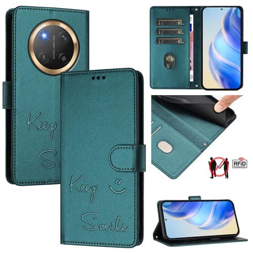 Funda de Cuero RFID con Relieve Sonrisa Global para Honor X9C 5G (Verde Pavo Real)