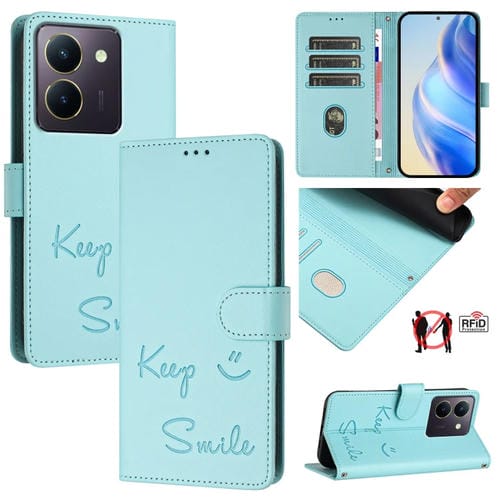 Funda de Cuero Rfid con Relieve de Sonrisa Global para Vivo Y27S 4G (Verde Menta)