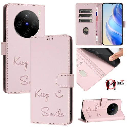Funda de Cuero Rfid con Relieve de Sonrisa para Vivo X100 Pro 5G (Rosa)