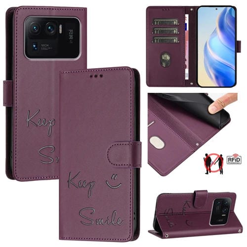 Funda de Cuero Rfid con Relieve de Sonrisa para Xiaomi Mi 11 Ultra (Violeta)