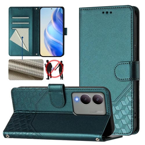 Funda de Cuero Rfid con Relieve En Panal Global para Vivo Y17S (Verde Pavo Real)