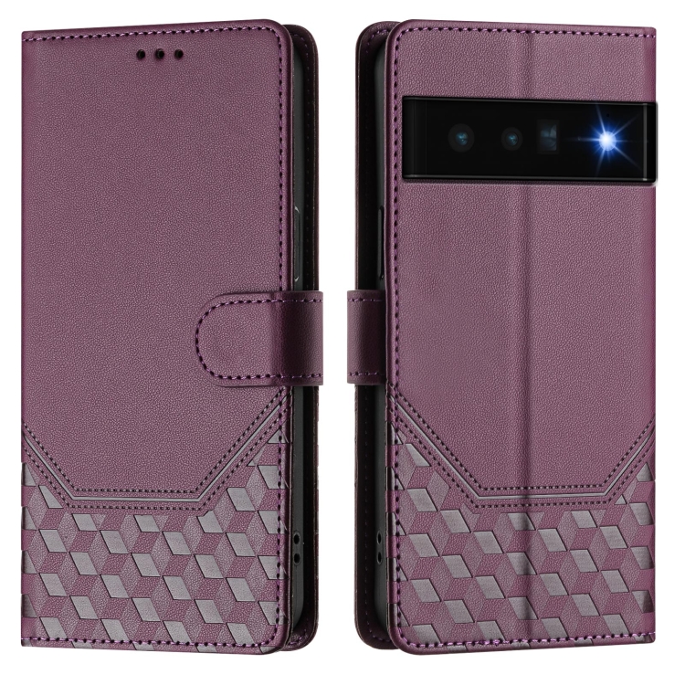 Funda de Cuero Rfid con Relieve en Panal para Google Pixel 6 Pro (Violeta)