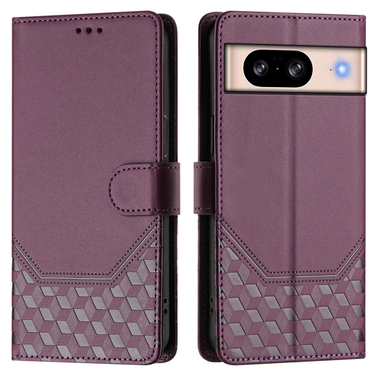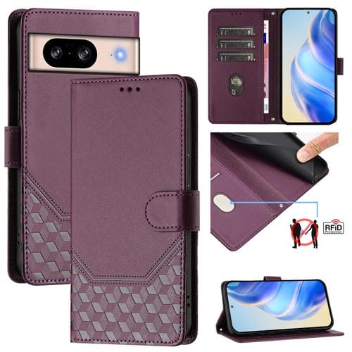 Funda de Cuero Rfid con Relieve en Panal para Google Pixel 8 (Violeta)