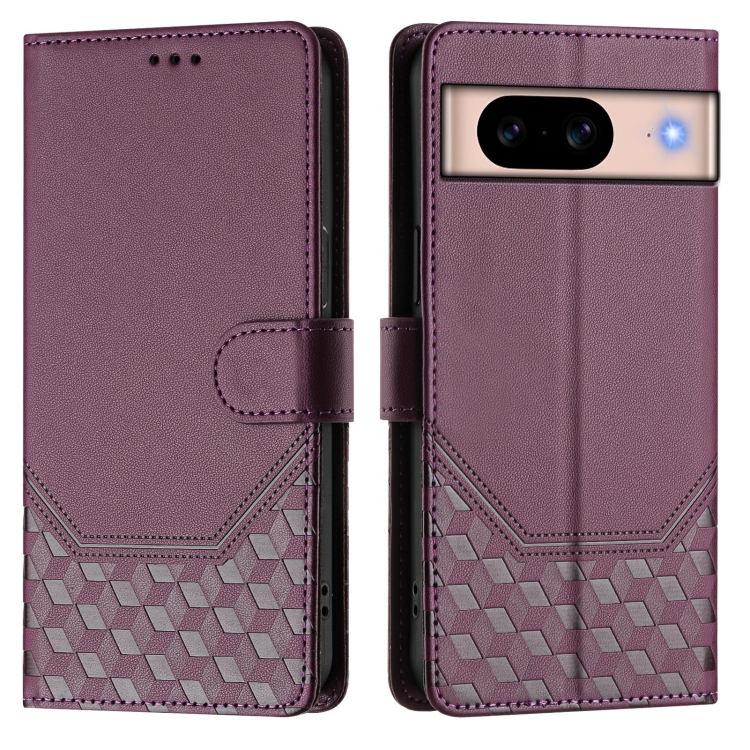 Funda de Cuero Rfid con Relieve en Panal para Google Pixel 8A (Violeta)