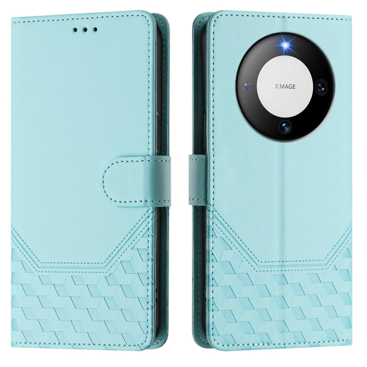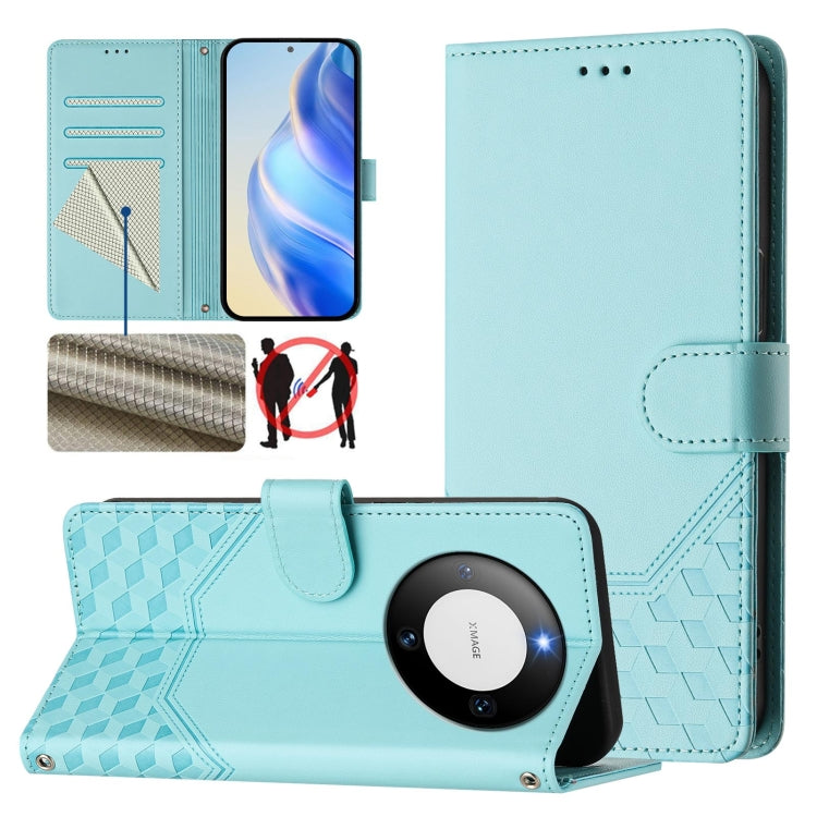 Funda de Cuero Rfid con Relieve en Panal para Huawei Mate 60 (Verde Menta)