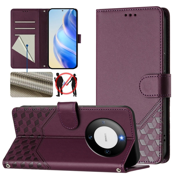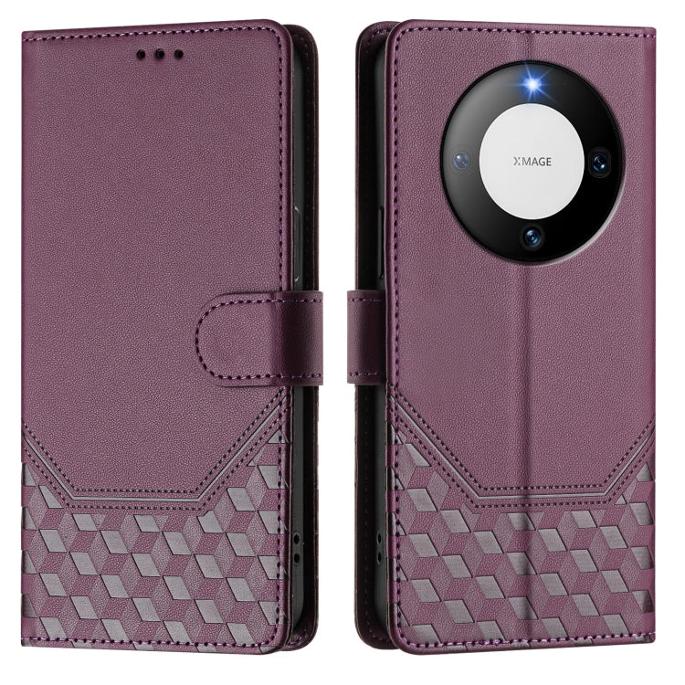 Funda de Cuero Rfid con Relieve en Panal para Huawei Mate 60 (Violeta)