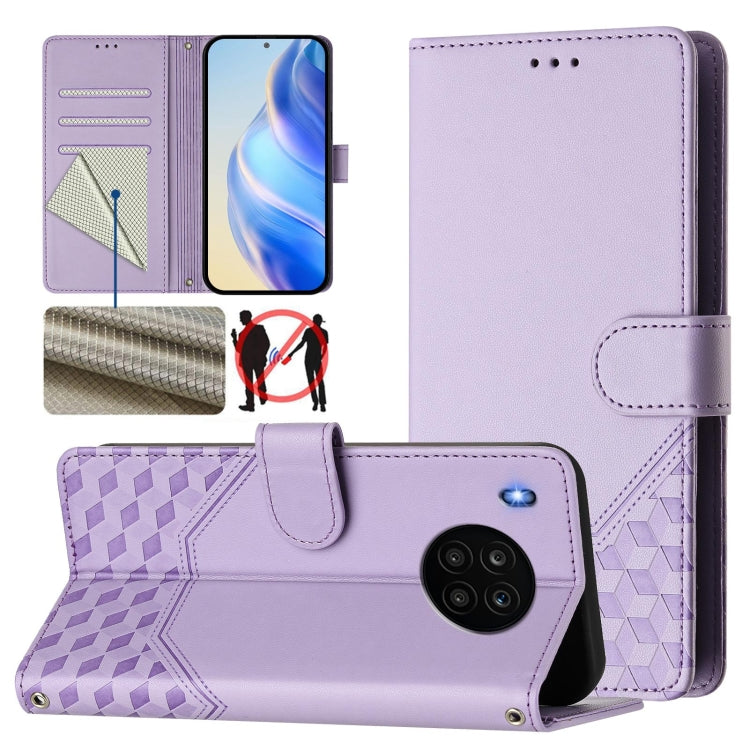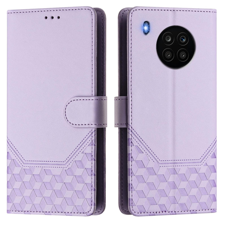 Funda de Cuero Rfid con Relieve en Panal para Huawei Nova 8I (Morado Claro)