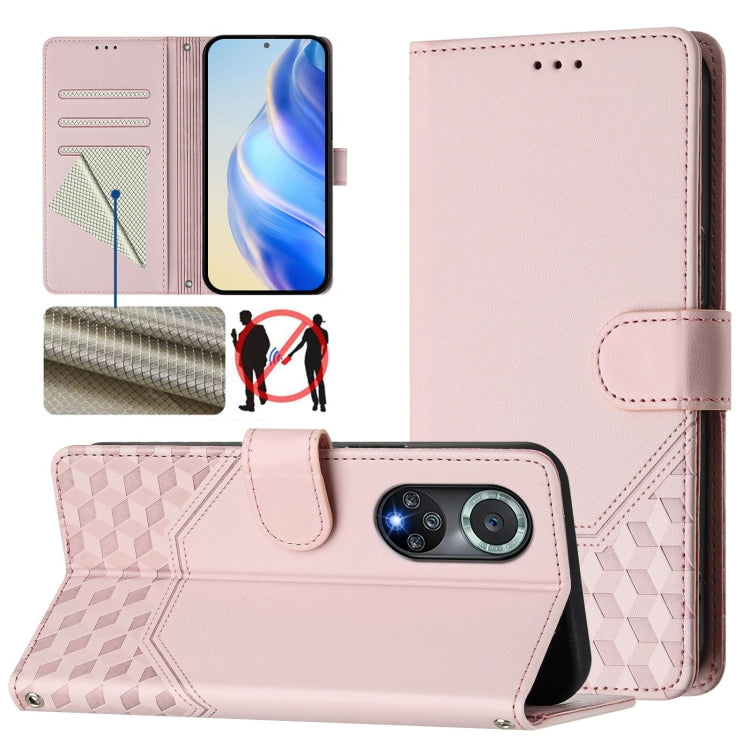 Funda de Cuero Rfid con Relieve en Panal para Huawei Nova 9 Pro Honor 50 Pro (Rosa)