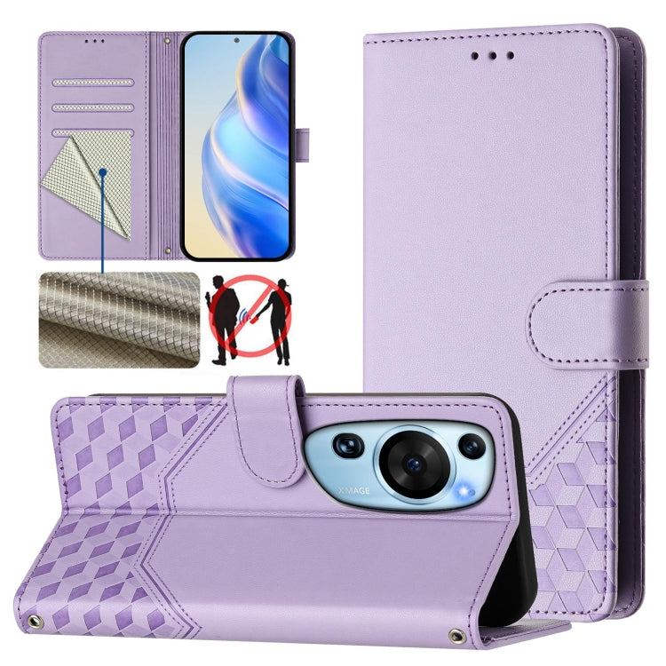 Funda de Cuero Rfid con Relieve en Panal para Huawei P60 (Morado Claro)
