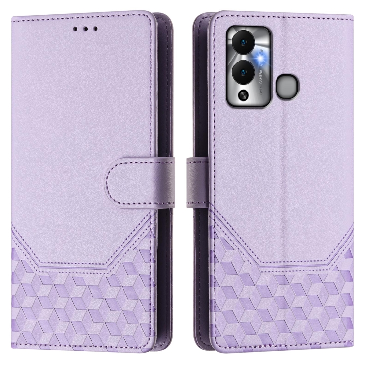 Funda de Cuero Rfid con Relieve en Panal para Infinix Hot 12 Play (Morado Claro)