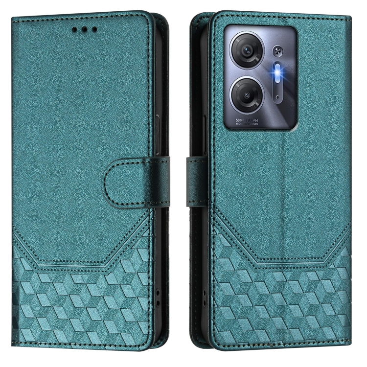 Funda de Cuero Rfid con Relieve en Panal para Infinix Hot 30 5G (Verde Pavo Real)
