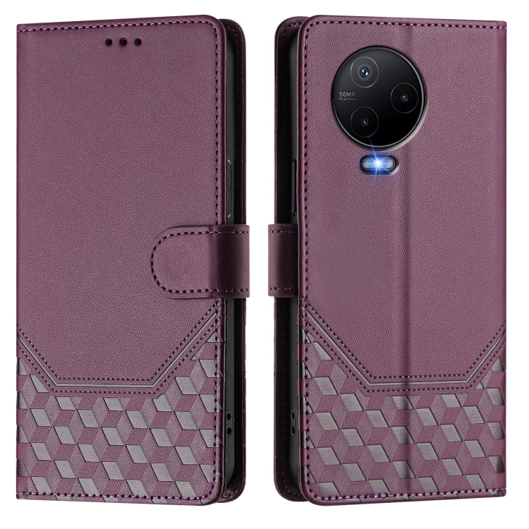 Funda de Cuero Rfid con Relieve en Panal para Infinix Note 12 4G y Note 12 Pro 4G (Violeta)
