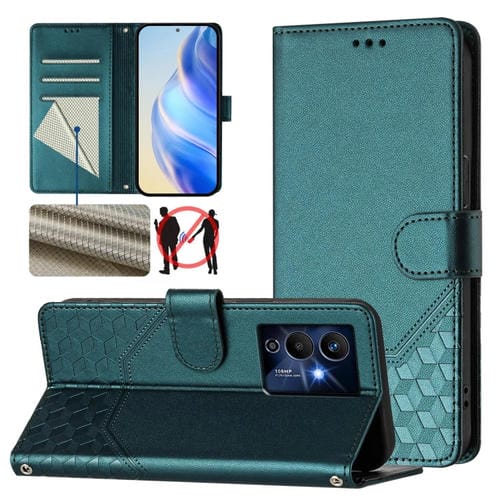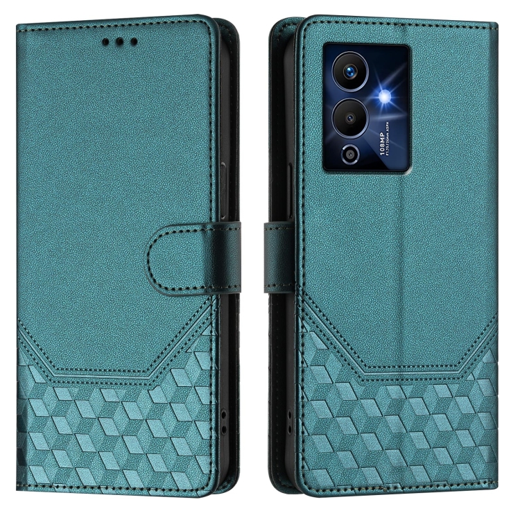 Funda de Cuero Rfid con Relieve en Panal para Infinix Note 12 Pro 5G (Verde Pavo Real)