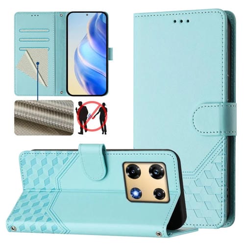 Funda de Cuero Rfid con Relieve en Panal para Infinix Note 30 Pro 4G (Verde Menta)
