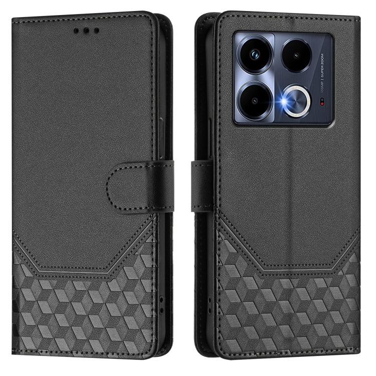 Funda de Cuero Rfid con Relieve en Panal para Infinix Note 40 4G (Negra)